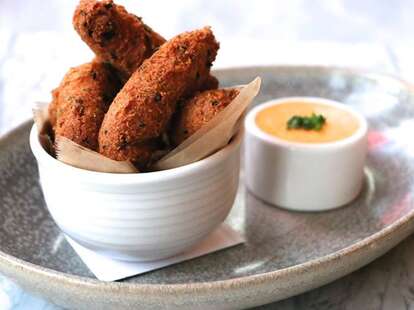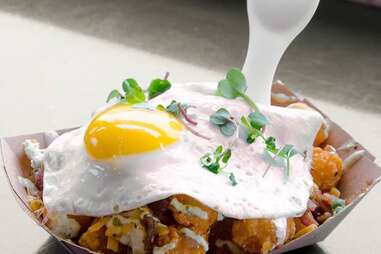 You wouldn't expect much in the way of fried fare from a taco spot, but Velvet Taco's got just enough American in it to make that a thing. Fresh-out-the-fryer tater tots are tossed with shredded cheese and topped with a sunny side-up egg, which can either make for the best breakfast ever or an incredible side to any number of tacos on the menu.