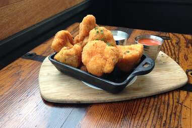Before any sizeable meal can proceed at this modern soda shoppe-themed spot, you absolutely must start with these spicy-sweet spheres of fried cornmeal. If the pepper flecks aren't enough of a kick, take these puppies for a dunk in the accompanying North Carolina-style hot sauce butter.